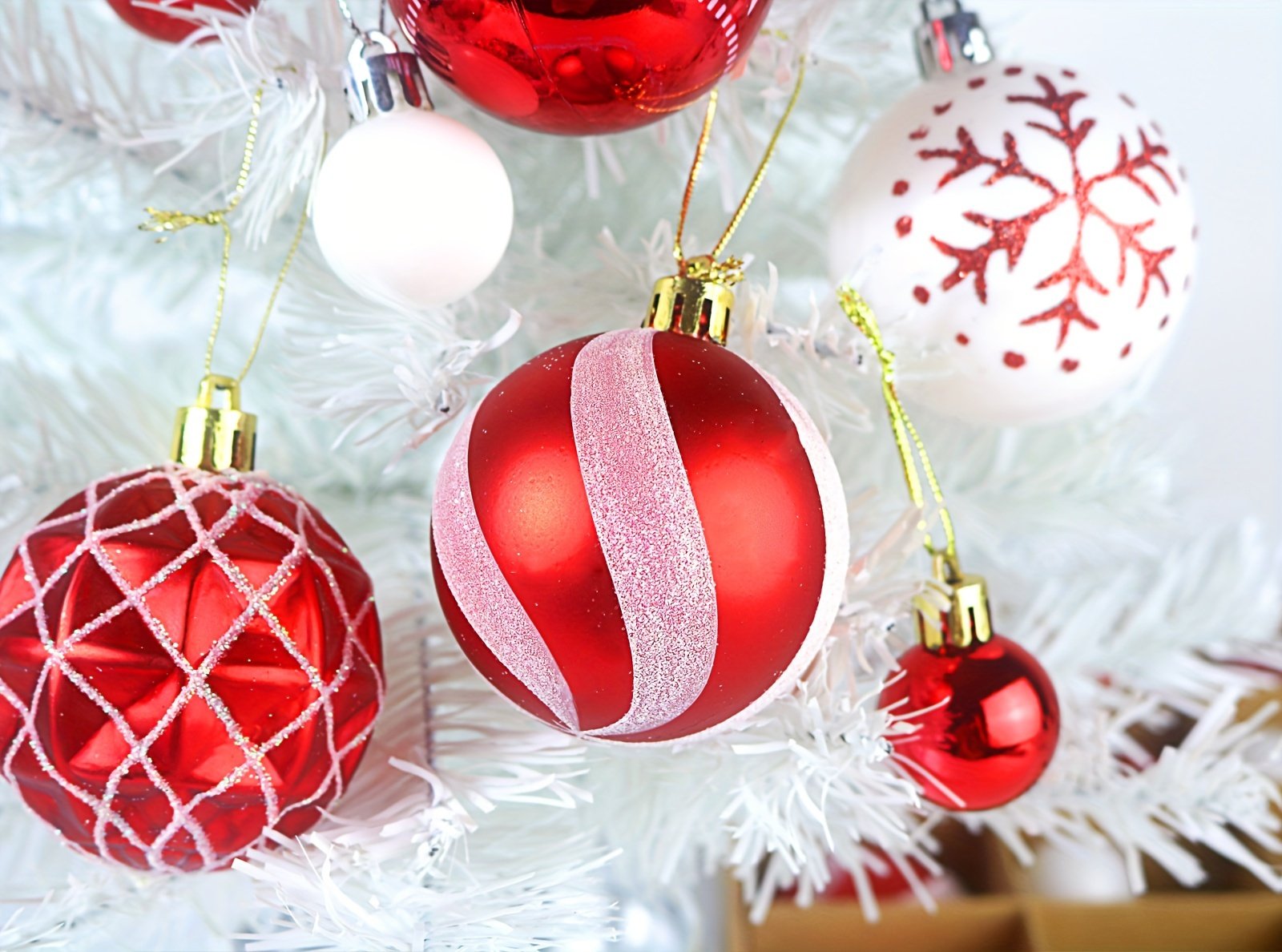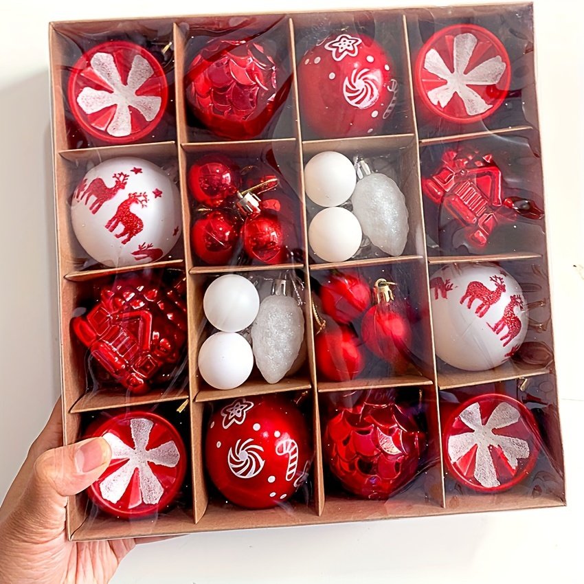 Christmas Tree Ornament Set – The Christmas Ornament Set is sold in packs of 42 and contains decorations of all shapes and sizes, these white and red gold decorations make a beautiful decorative effect!