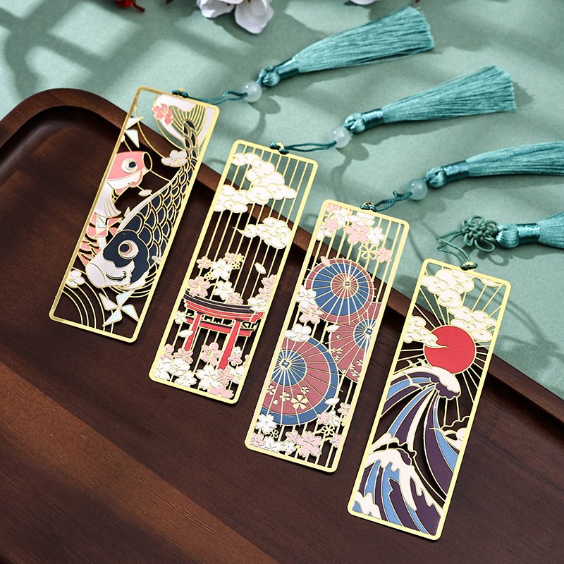 Goodsright Decor 4Pcs Japanese Style Metal Bookmarks, Fushimi Wind Gift Box, Traditional East Asian Souvenir, Elegant Design, Durable Other Metal Materials